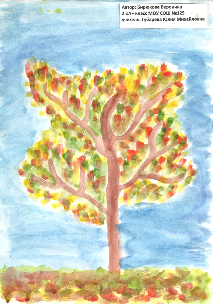 – Рисуем крону, используя прием примакивания (Учитель на доске, дети за партами внимательными и аккуратными. С чего начнем
