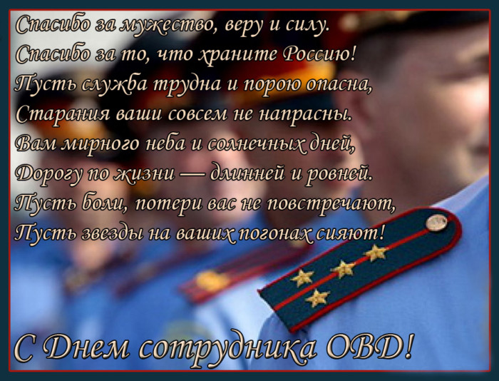 Стоит всегда — и день, и ночь!С Днем полиции! Успеха и всех А труд этот Пусть прольется вам, желаем,сокрыты,закона ссмело!Рьяно бережешь порядок,горят,И тайны холодные, что во мраке