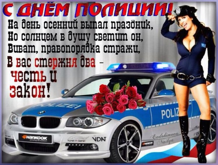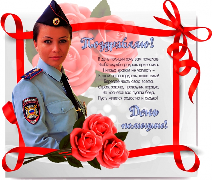 Варианты самых красивых картинок для девушек и женщин на День полиции со стихами