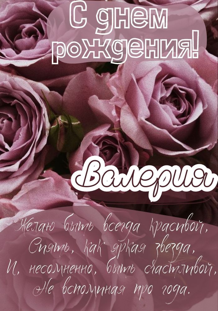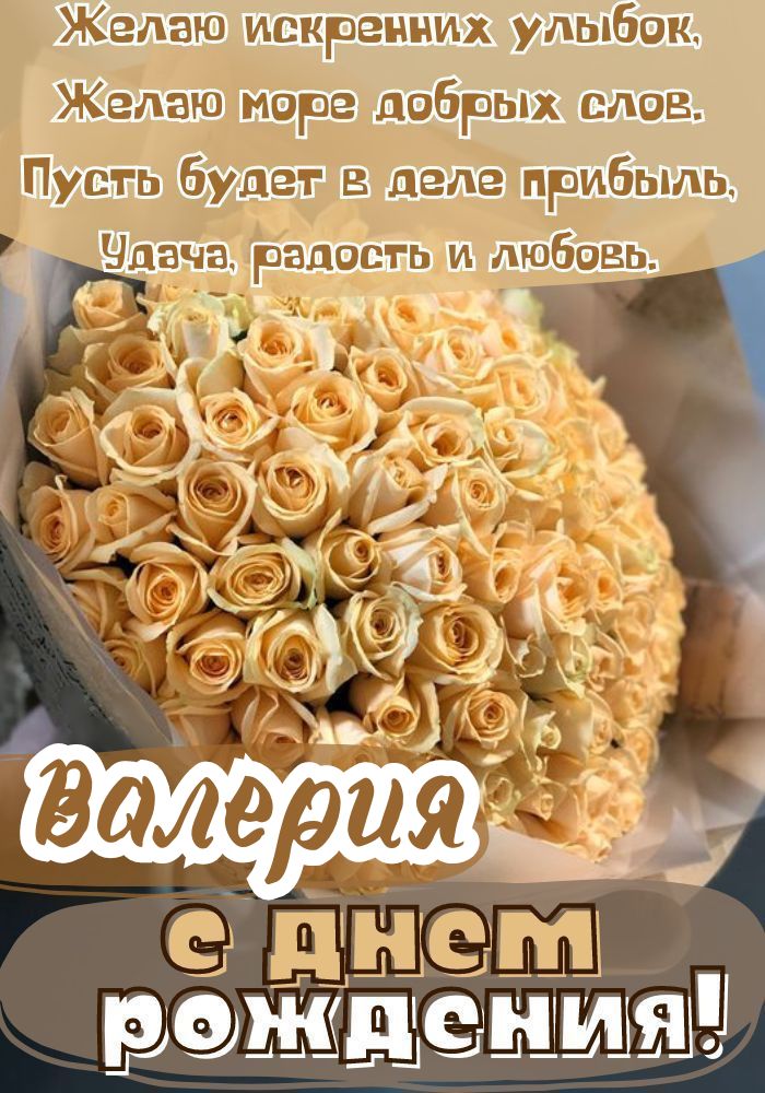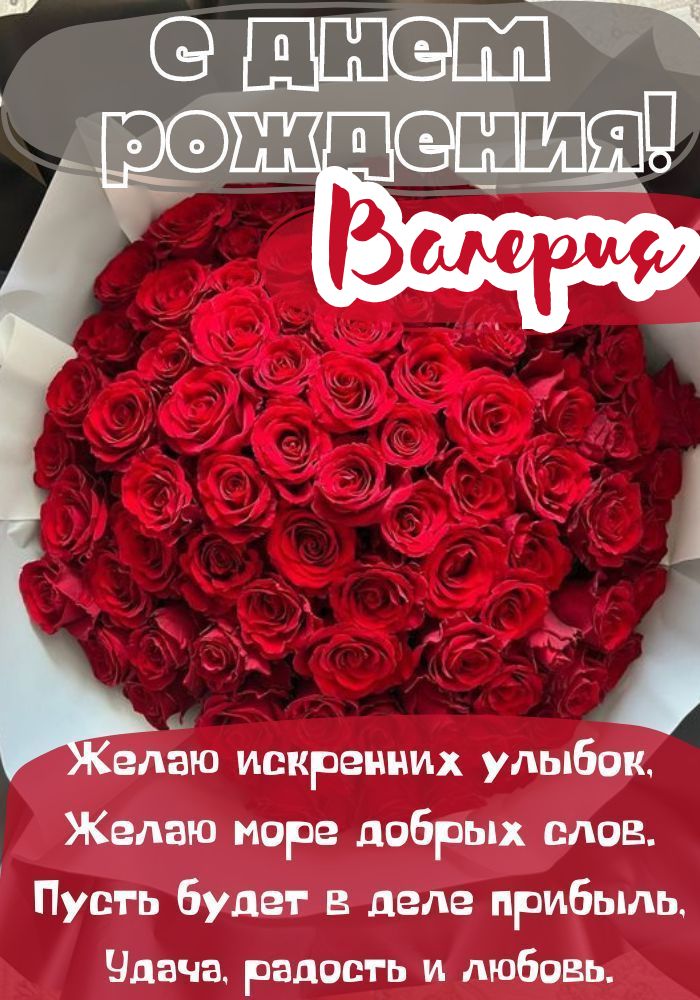 Сияй всегда от мечты!Шикарный букет роз Пусть тебе всегда тебя!Валерии поздравление с — С днем рождения, Валерия!