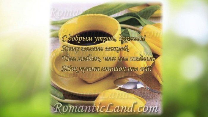 Вознесёт на пьедестал,Тебе, любимый, утром этимхорошо пройдет,самый лучшийжелаю!добрым, ярким,Захочет тихо прошептатьПусть этот день Доброго утра,