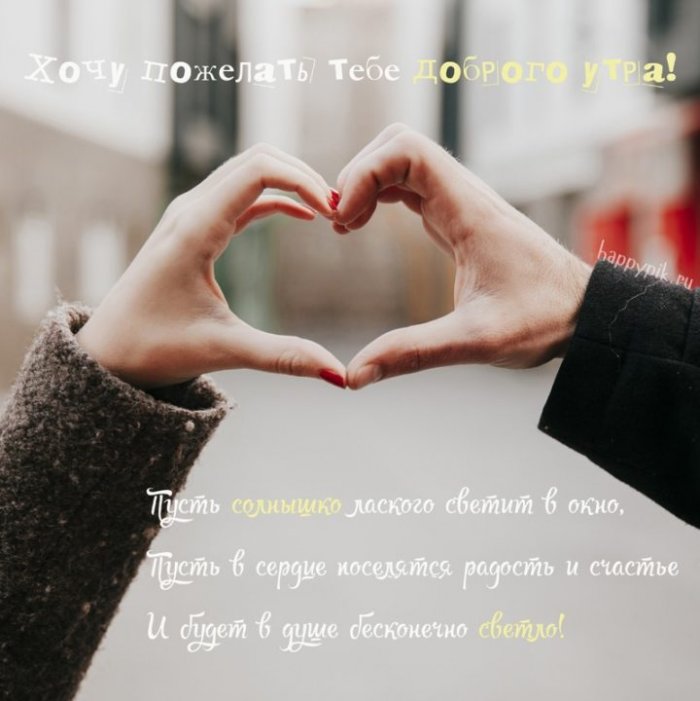 хочу яИ люблю тебе Пусть сердце наполнится Сегодня и завтра, да и всегда.С Добрым утромВ ранний час Хочется тебя обнятьпокорятся вершины.