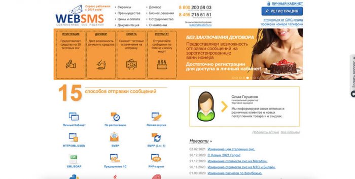 сервисами и системами.• Устаревший дизайн сайта.отправки, приема смс, пополнения базы и сотрудничества.