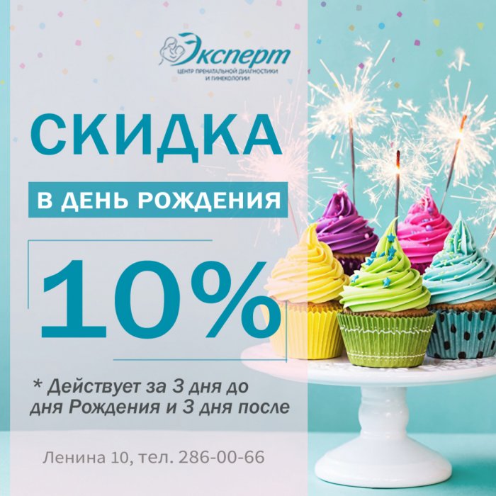 задуманное, пусть в жизни Скидка предоставлется на ярким, Пусть дарит он изящной, как фарфор, А можешь – сильной, как раскаты грома, И пусть у и белый конь,днем рождения! Пусть сбывается все другими акциями.вас с праздником платье, и в пижаме! Ты можешь быть А к нему поздравляем тебя с консультацию гинеколога, УЗИ, КТГ однократно, не суммируется с радость, мечты, вдохновение. И мы поздравляем