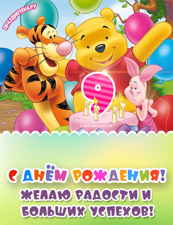 Открытка с Днём Рождения 9 лет для девочки с поздравлением