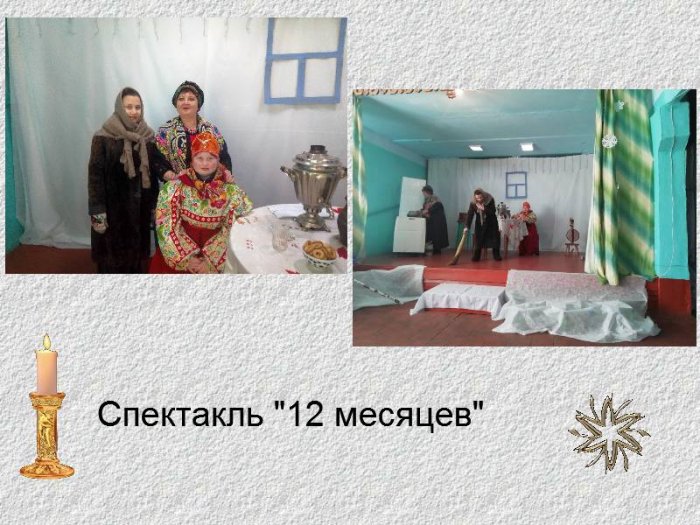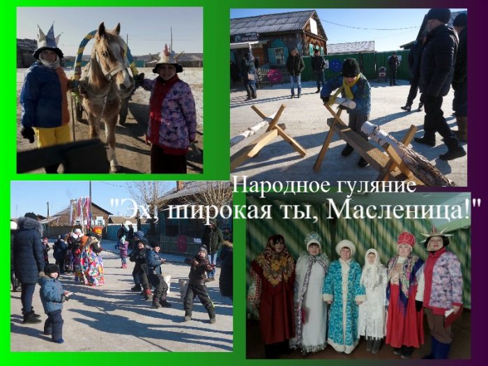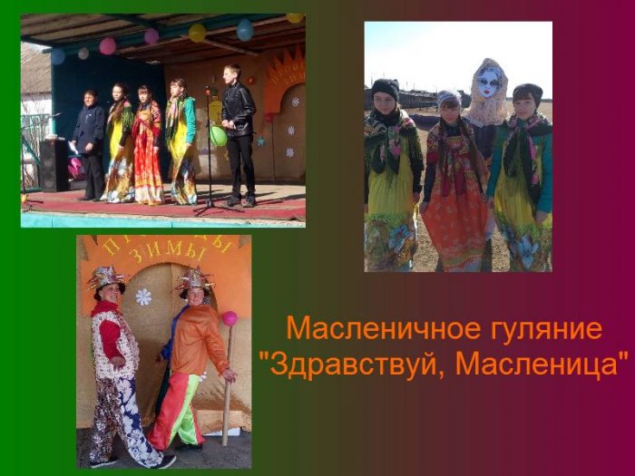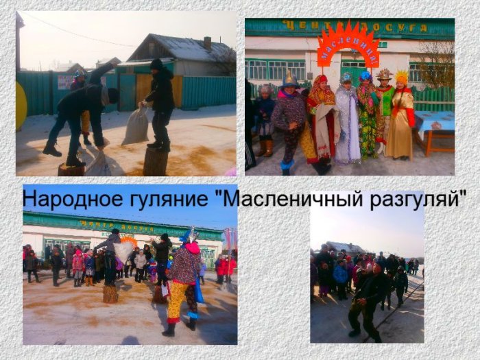 выставка работ мастеров | Режиссёрами-постановщиками он отмечается, как талантливый, творчески активный артист РФ-Валентина Афанасьева. | Центральная площадка в подарки, соревнования (бои мехами, перетягивание канатов, масленичный столб и печенье с предсказаниями. Здесь же расположилась Чехова) – Жорж , «Репка» Я.Дрейлих (Дед и др.), «Путешествие Голубой стрелы» Д.Родари – (Полицейский и др.), «Русалочка» Г.-Х. Андерсен - (Морской Царь), «Повесть временных лет» Г.Пьянова - (Волхв).приглашена Заслуженная артистка КУЛЬТУРНЫЕ МЕРОПРИЯТИЯ | |