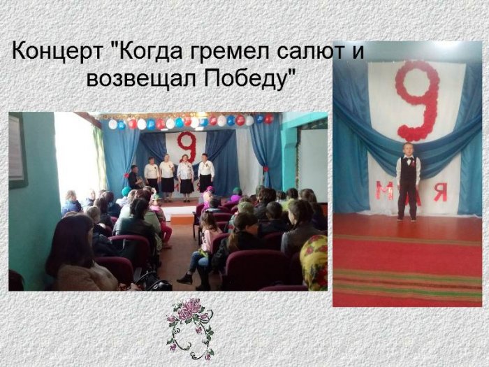 Праздничный концерт, в рамках районного МОБУ средняя общеобразовательная 8 маяМуниципальное бюджетное учреждение 7 мая