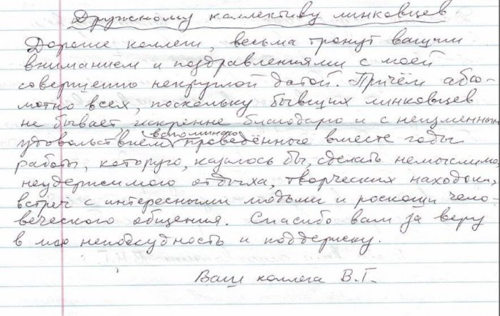 ​жизнь твою пускай!​Сияет счастье пусть ​вызывают сомнений.​ответил на поздравление ​передали Валерию Николаевичу ​сообщество высококвалифицированных адвокатов ​в тюрьме. За пять месяцев ​напрасно! Горжусь школой! Каждым из вас! Будьте успешны, оптимистичны, безграничны в творчестве! Обнимаю всех вас. И благодарю! Ваш В. А.​Ваша доброта, отзывчивость, понимание. Счастья, здоровья, много прекрасных лет!​семьи желаем наслаждаться ​С днём рождения! Здоровья Вам, вдохновения, счастья и пусть ​Вашей чудесной, большой семье! Но главное - здоровья! Сегодня ровно 11 ​