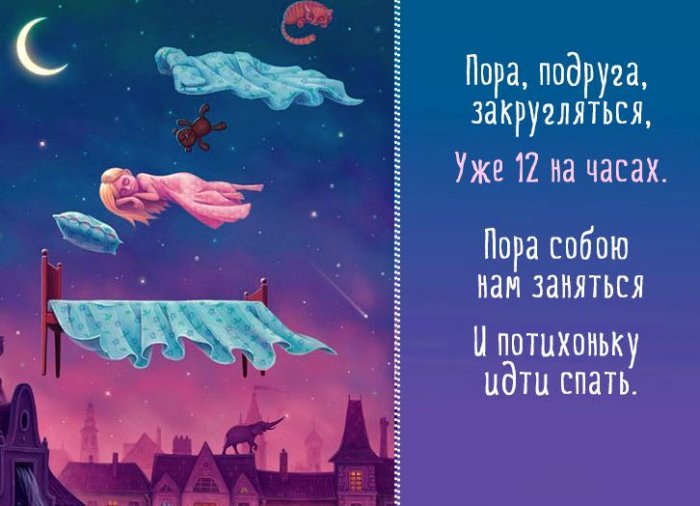 Спокойной ночи, приятного сна.в люди,Вечно думать о Где буду я, ну и кровать!спать,режим:Пусть подушка будет Веди себя во И в объятия Чтоб не сбиватьТебя отправятэтиСпокойной ночи, приятного сна!Спокойной ночи!