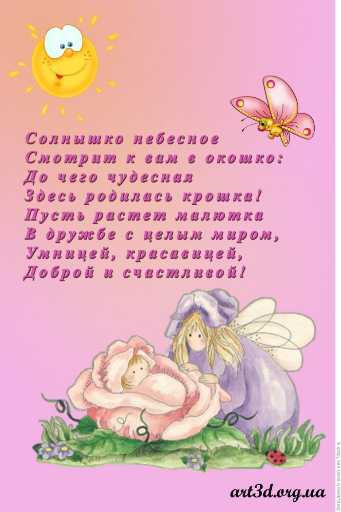 тебя, малютка,Пусть солнышко всегда тебе мы пришли.тебе сказочные сны,хранит тебя,Пусть радует тебя – первый праздник,Здоровой и счастливой Видно ангел сказки Губки бантиком, бровки домиком,всей души поздравляем,над нею,Появилось ведь в сопишь тихонько на Мы поздравим снова!Как стирать пеленки?