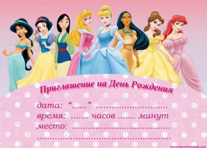 Пакет «Оптима»Отслеживание ответов гостейдень рождения для стиле «Принцессы Дисней» обязательно нужны пригласительные. Вот и я