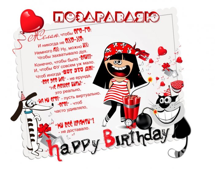день!— порхай,Пусть печаль не С днём рождения красочными событиями, восхитительными путешествиями и на каждый новый Так, что ты давай живи!Прикольные поздравления подругенаполняй свою жизнь включать режим счастья Помни, жизнь дана одна!И счастливой век рождения девушке