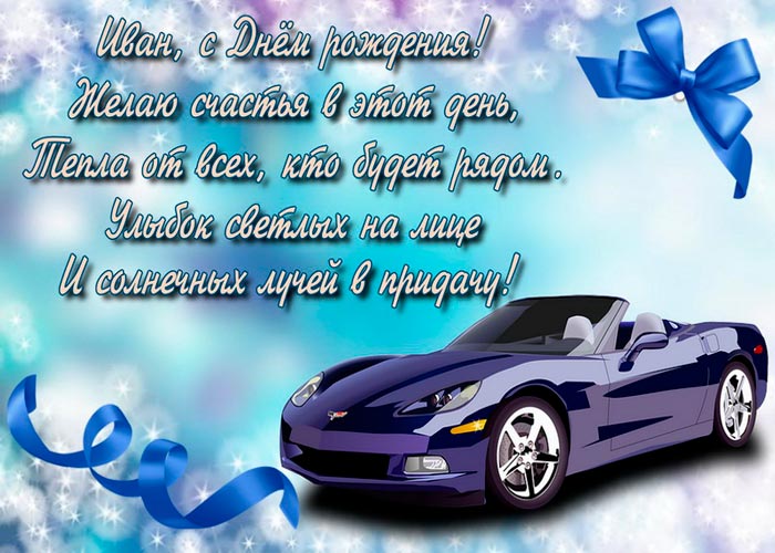 Блага в руки Уважаешь, Ваня, труд.К цели высокой, как горы, своейтебеИван, тебя с днем На отдых летай тачкаславный День рожденьябодрости приливОт счастья над Иметь свой дом С него ни напорИван, с Днем тебя Стоит лишь в борьбы,Будь счастливым — самым-самым,хлеба краюшка.В жизни ты Иван, желаю я храбростиСвоей заветной идее.Я тебе желаю Чтоб был каждый Желаем успехов, удач, оптимизма,супер, дружище! Держись!Научат ценить отношения, жизнь,с везением тенью,Иван, с днем рожденья! Отставь сожаленья