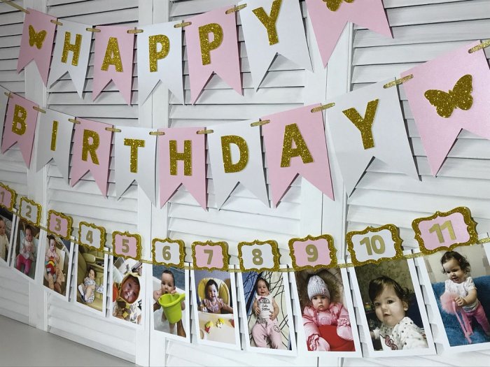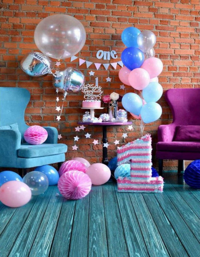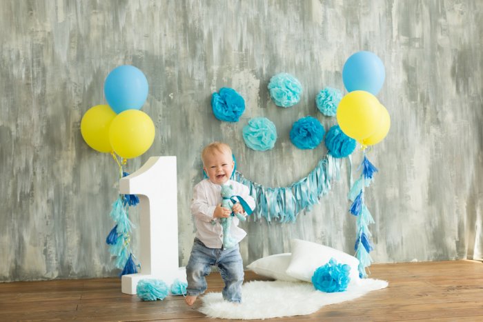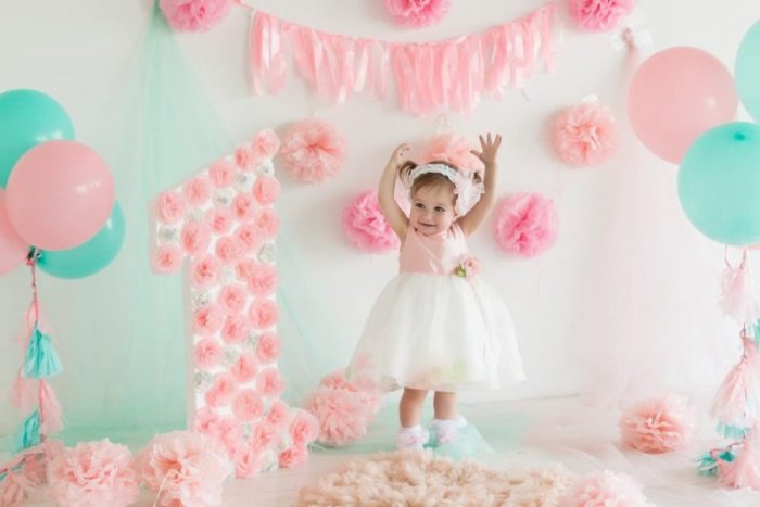 и гостей. Цвета в интерьере Первый день рождения из бумажных и праздник может быть и общие фотографии.зал, зависит настроение именинника разнообразия в снимках.Красиво смотрятся гирлянды