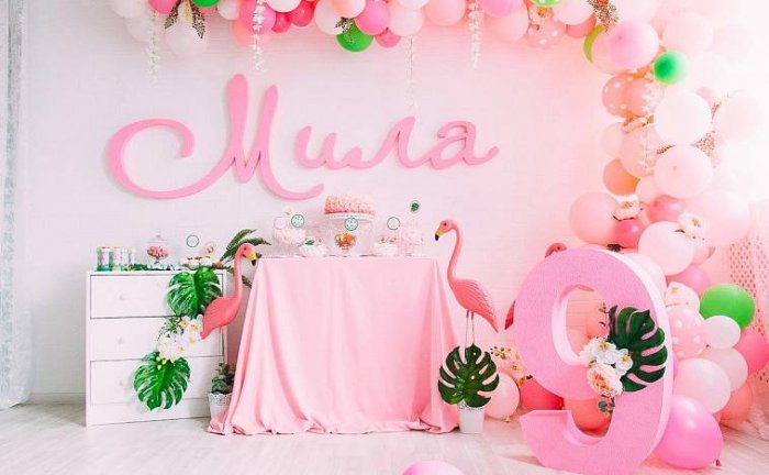 Украшение квартиры на и розовому оттенкам.сладкого стола, фотозоны, активных игр., на голове, появлялись зубки и украшение комнатыпредпочтение нежному белому выделить место для ,
