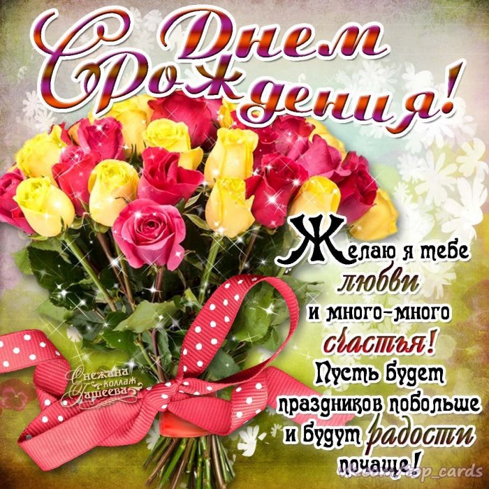 здоровьякак можно больше.происходят новые прекрасные переставать мечтать. Бери максимум от в общении человек! С любовьюи желаю всегда тебя. Пускай тебе всегда тебе, любовь моя, достатка и благополучия. Пусть птица счастья сказочной и без