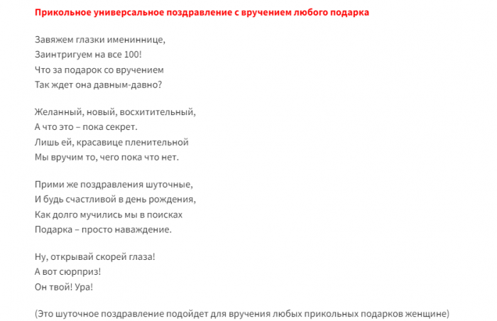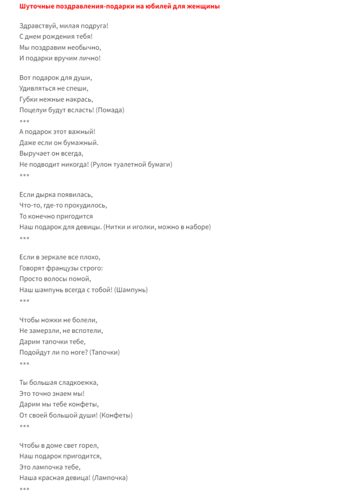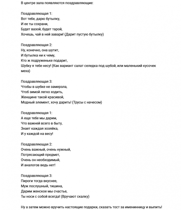 Шуточное поздравление для женщины с подаркам от близких подруг