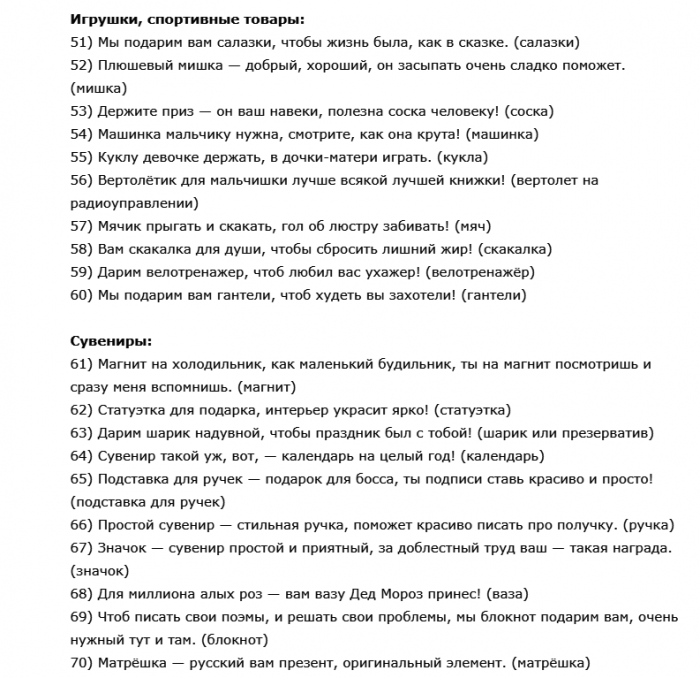 и булку мажь.мертвое море, с момента, как ванну наполните убрался жир –женщине в стихах, Хрен на хлеб 5) Отправитесь вы на Третий: Чтоб с боков Шуточное вручение подарков , мондраж,