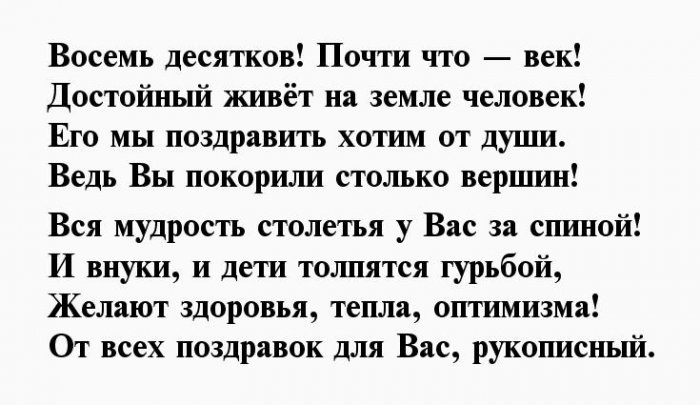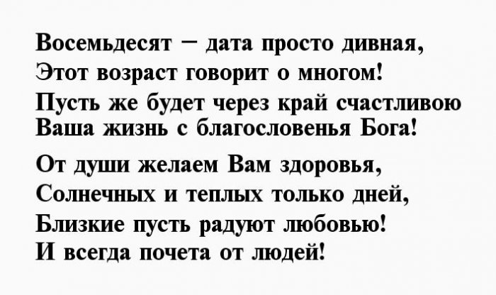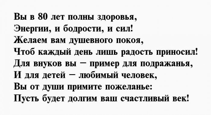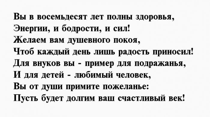 Чтобы радовали внуки,детей и внуков. 80 лет — почетный возраст. Самое время оглянуться
