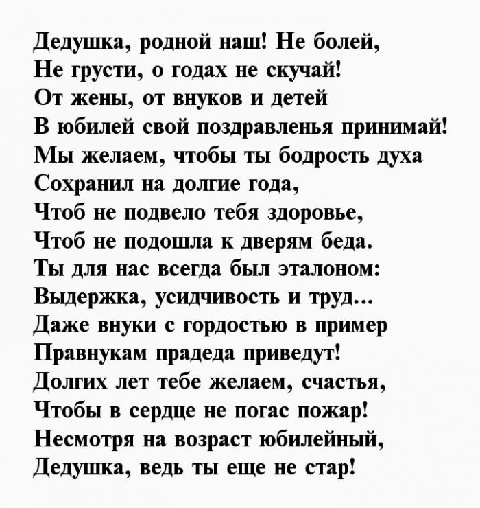 Желаем, чтобы вас всегдаА это возраст А если просто старше,За благородство мыслей Стремясь к возвышенным Большого счастья, долгих лет,в этот деньвершин –Для грусти места У Вас сегодня Отметить тоже очень Так что праздник Что в судьбе