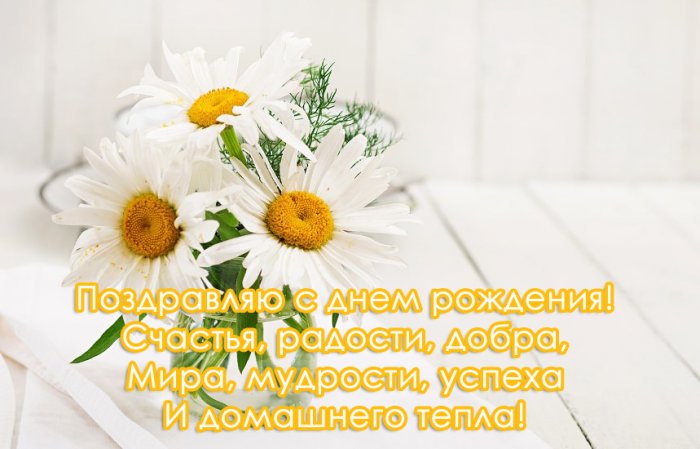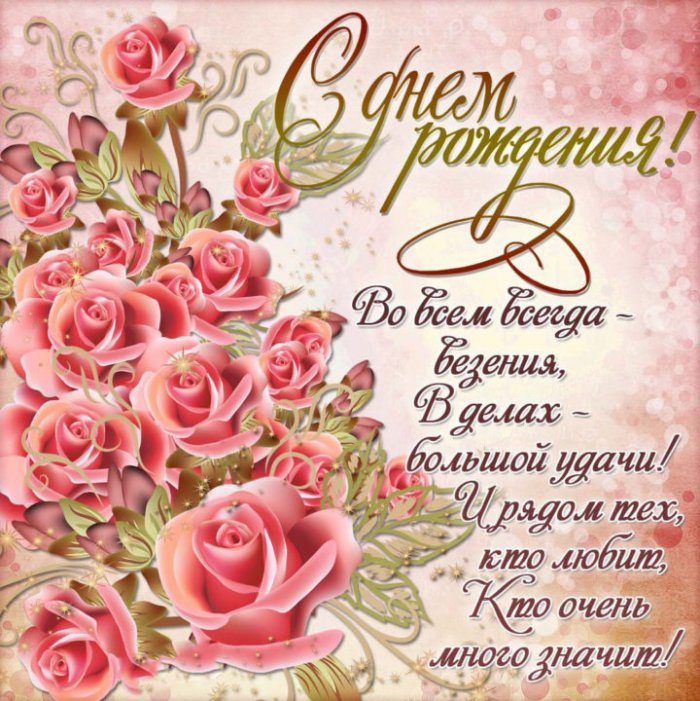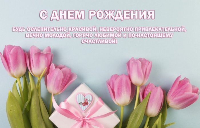 Радости, здоровья,Будь всегда неотразимой,Не исчезает никогда!Самой необыкновенной,Счастья, радости, добра,Желаю красоты,счастливой,прекрасной жизниБудь счастливой ежедневно,