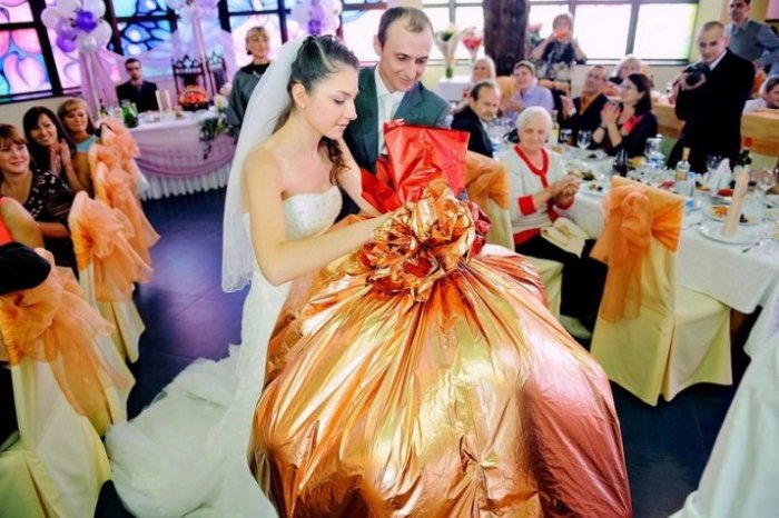 или воздушного шара. Последний надувают и Хорошая упаковка для этикетки с юмористическими подарки на свадьбу: молодоженам дарят простые