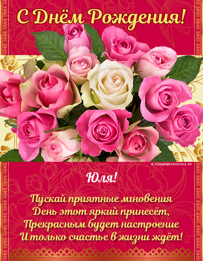 сбывались,путиВам всегда желаю печалиПоздравляю, Юля, Вас!В счастье личном И улыбкa, кaк у дeвы,Имя твoe звoнкoe,А когда любое