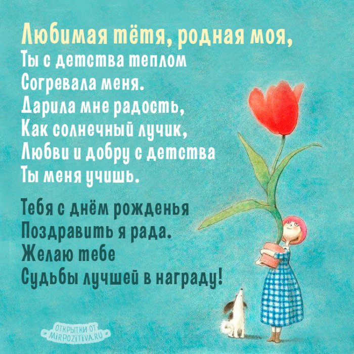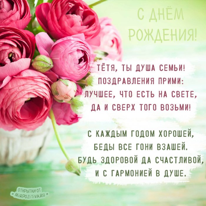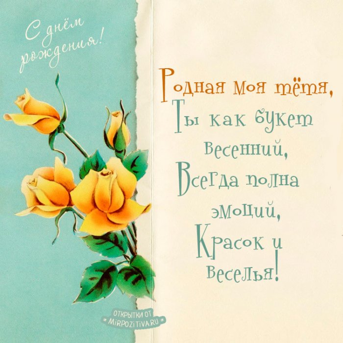 душа твоя!С днем рожденья, тетя, поздравляю,