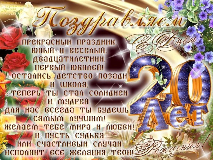 С днем рожденья! Парень, тебе сегодня 20. Пусть жизнь открывает