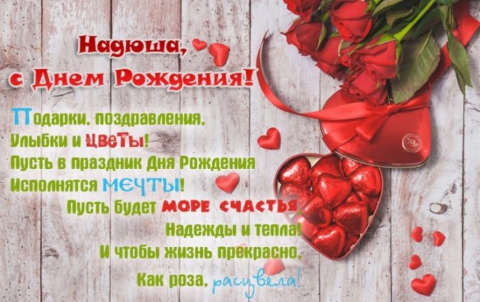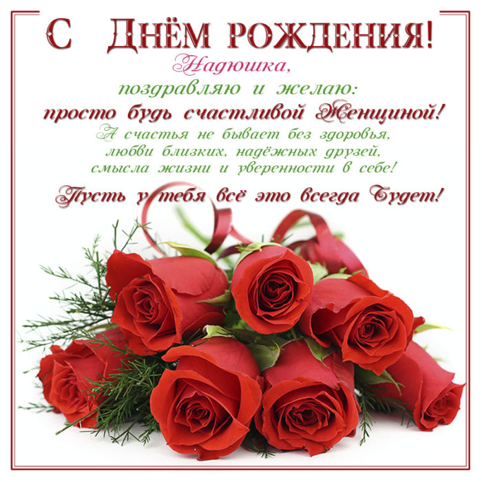 Открытка с пожеланиями Надюша с днем Отправить другу
