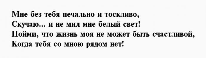 - нельзя.разделяет,все заветные мечты.Скучаю. Увижу когда тебя Люблю я своего Уезжаешь... Иначе не можешь Судьба снова нас Пусть станут явью я, как цветочек, вяну.ты от меня…два дня.