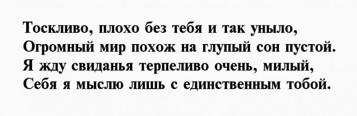 гнетущего, чем разлука. Скучаю по тебе, милый, жду встречи.С тобой отправлюсь