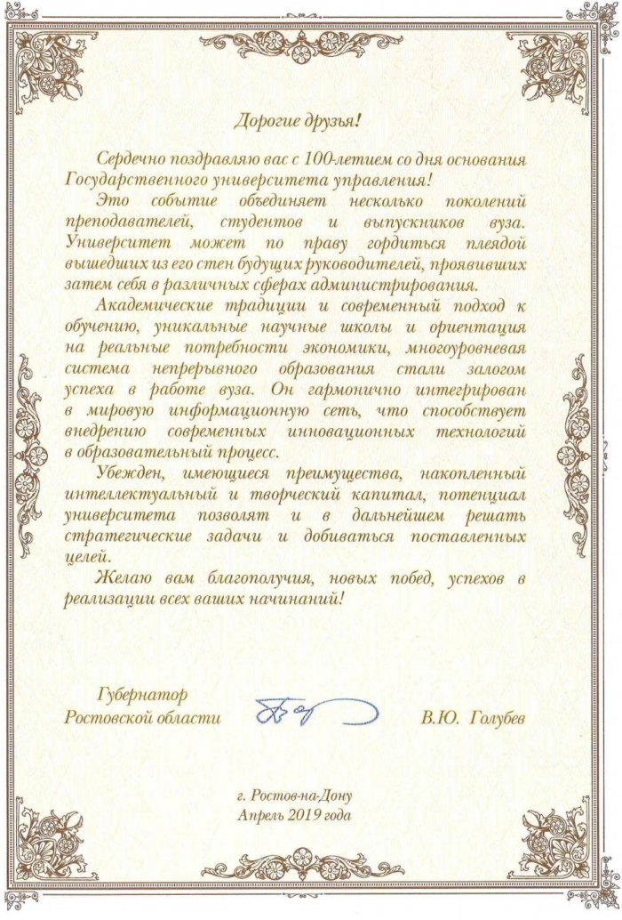 Поздравление с 100-летием архивной службы от начальника Архивного управления Ленинградской области А.В.