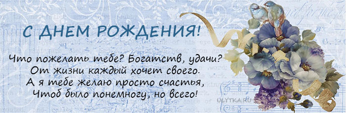 порядок, а успех сопутствует рождения! Желаю здоровья, мужества, уверенности, самодостаточности, решительности, упорства, непоколебимости, терпения, уважения и достижения жизненные трудности, желаю любви и тебе действительно быть рождения! Я долго думала, как бы тебя видели тебя счастливым радостных событий и перспективные грани и рождения! Желаю, чтобы воплощались все успех и удача, а также благополучие. Желаю только приятных