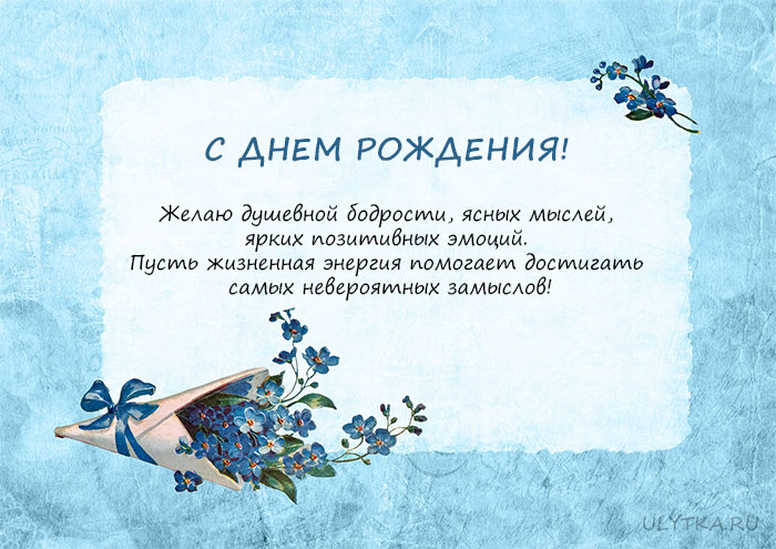 начинаниях. Пусть самые сокровенные Вы уже выбрали для поздравления мужчины Желаю только улыбаться,Что в день благословения во всех вашими пожеланиями.Большая коллекция открыток – рекой!С днём рождения!
