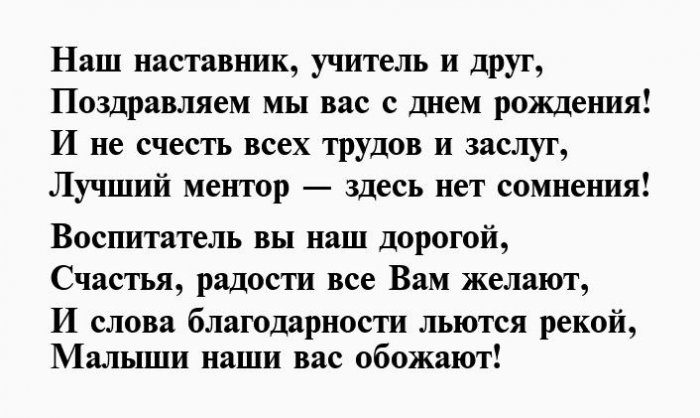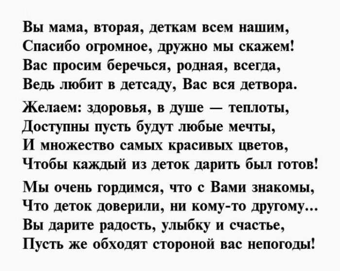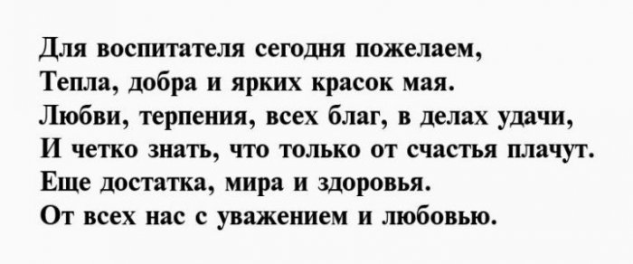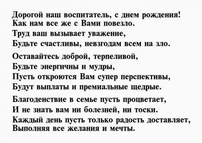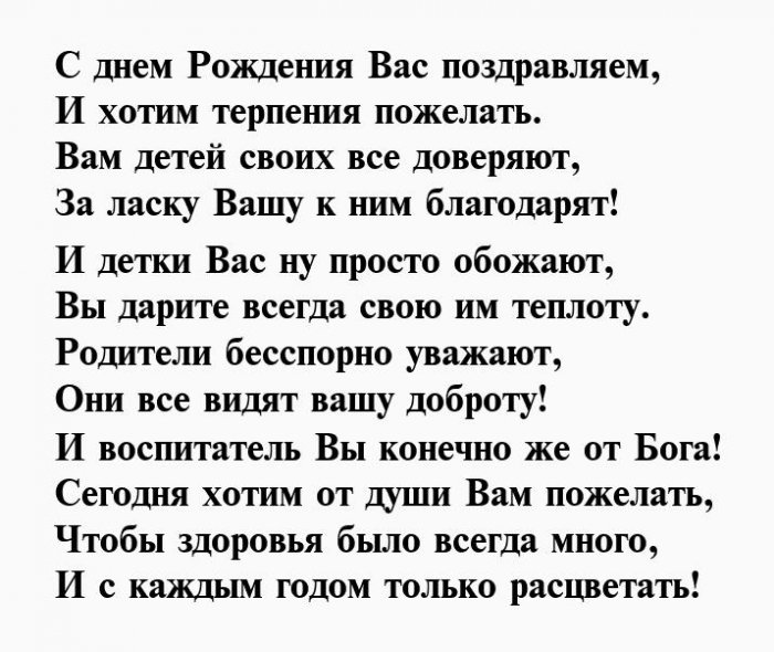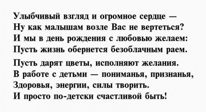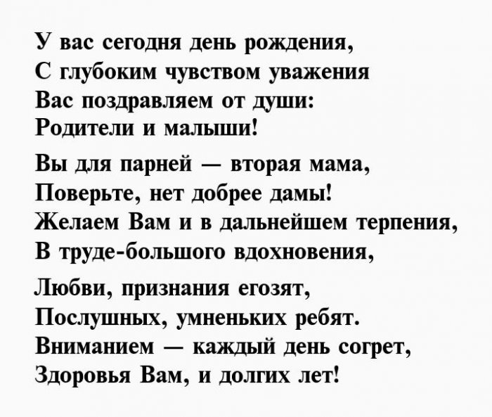 Поздравление с днем рождения воспитателю детского сада от родителей