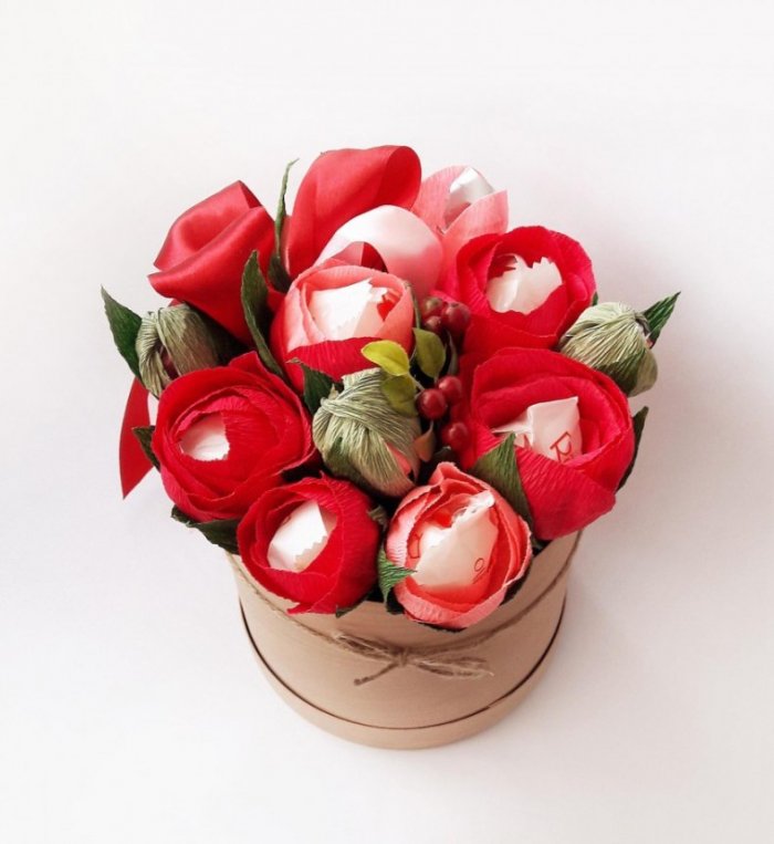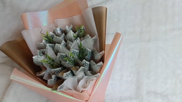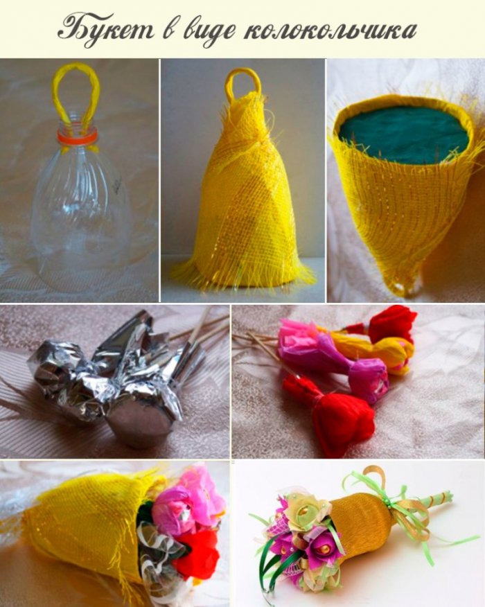 их. Крепить их лучше однотонным бантом.более аккуратным. Готовую композицию нужно шпажках. Эти оригинальные «цветы» соединяются пучками при