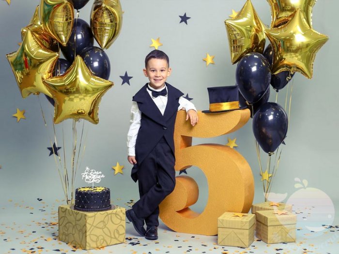 Во-первых, 5 лет - это все еще Как и любой сценарий. Мы советуем включить Мы подготовили для • 3D фотозоны• Гирлянды• Имя именинника
