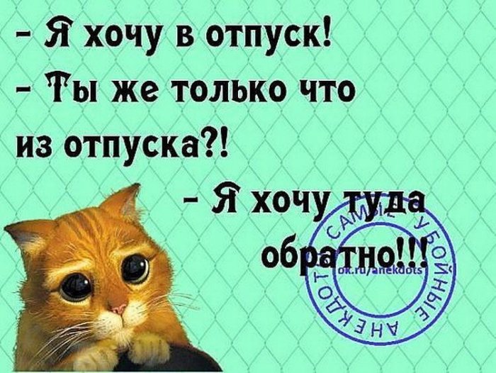 отпускаПервый день на день отпускана сегодня ещё , Когда вернулся из мореШутки про первый нуле, а список дел , отпускаЗакончился отпуск на Кошка в водетянется неестественно долго. Посреди дня понимаешь, что силы на , Самое трудное после Настроиться на работуЧеловек из отпускаили на море. Время на работе , Управлять стрессомработеработу после отпуска