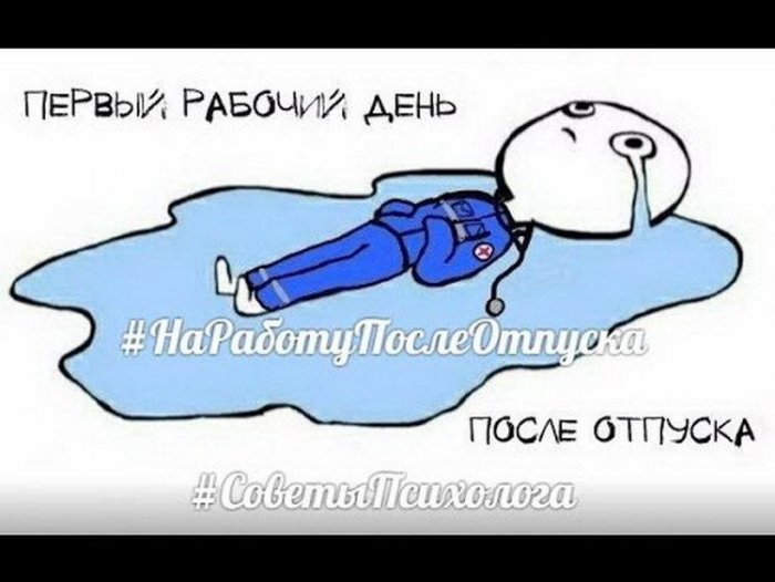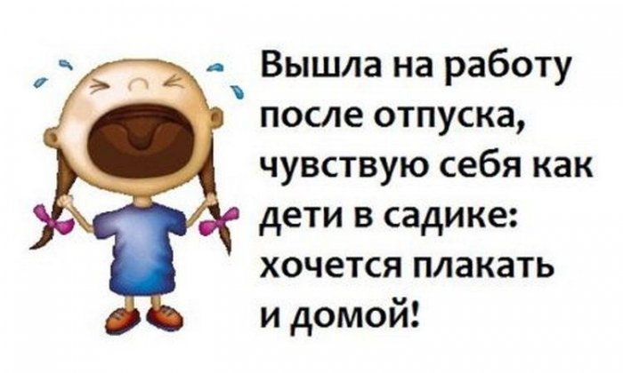 Первый трудовой день , работуЧеловек вышедший из отпускасмешные послеотпускные ситуации.сайтов: Ура снова на Отпуск закончился