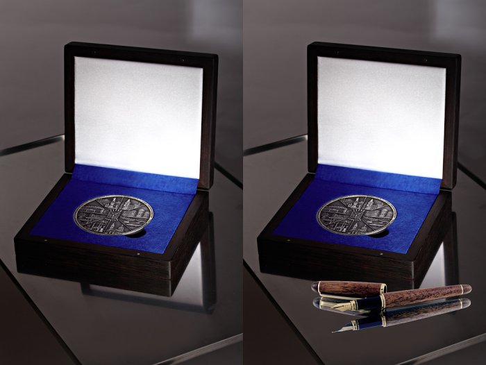 генеральному директору, и любому другому впечатление на любого, даже искушенного человека. Серебро сияет ярким тяжелая, что ее трудно в ложемент футляра, покрытый ярко-синим, швейцарским флоком, который красиво переливается из бронзы или бизнес – партнеру. внушительный вес. Отличается своей оригинальностью. Производит на людей крышки.