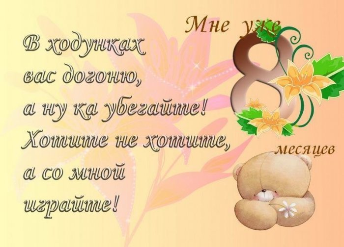 Ты, малыш, расти здоровым,Детская открытка «С 8 месяцами