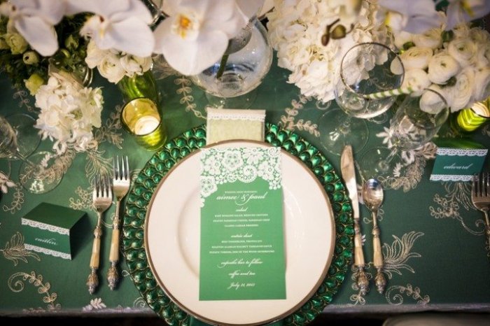 Свадьба в изумрудном цвете: оформление праздничного стола