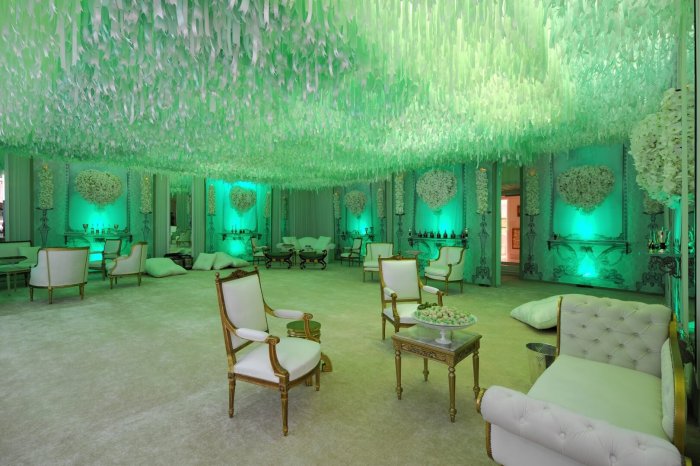 Украшение банкетного зала для изумрудной свадьбы