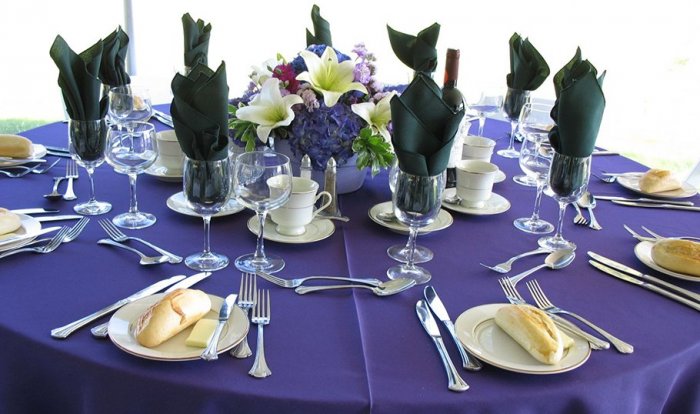 бывает,скатерти на столах, костюмы хозяев торжества