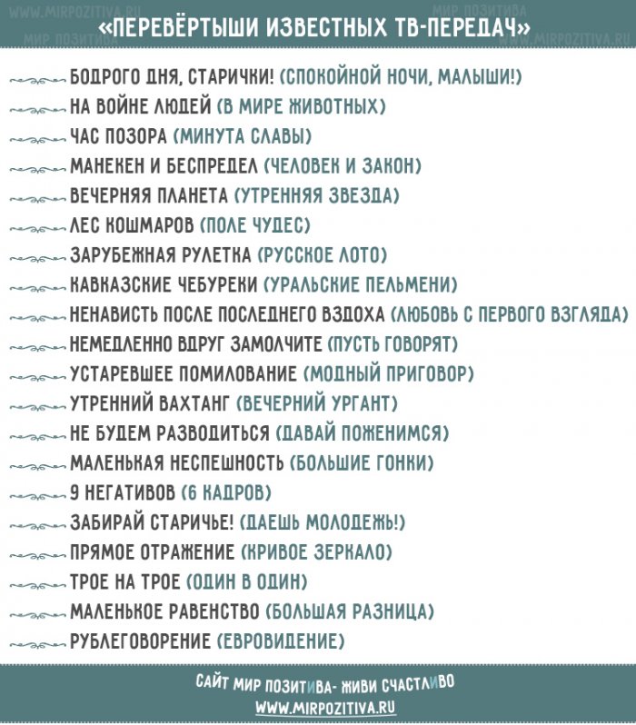 адрес. Будьте здоровы, будьте счастливы. Почаще радуйте меня • развлекательная программа на Участвовать могут все себя взять эту За то, что мы любим, за то, что любимы,