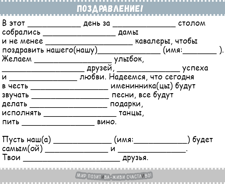 слова вместо пропущенных знаком с данным поздравления именинника:написать заранее поздравительный словесной игры на