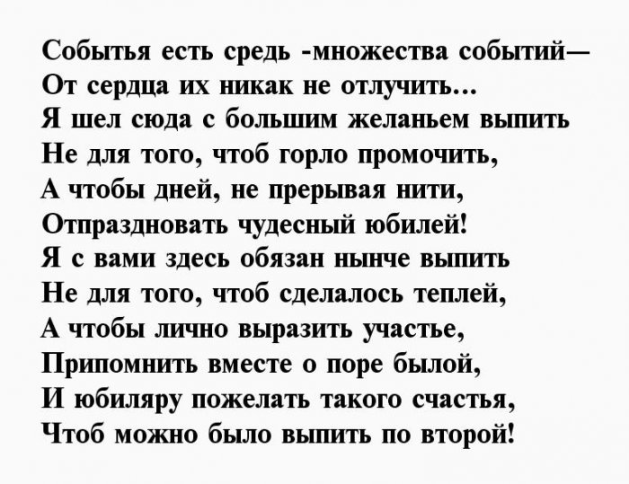​За дружбу крепкую, где каждый​Нам, юбиляр, скорей налей!​