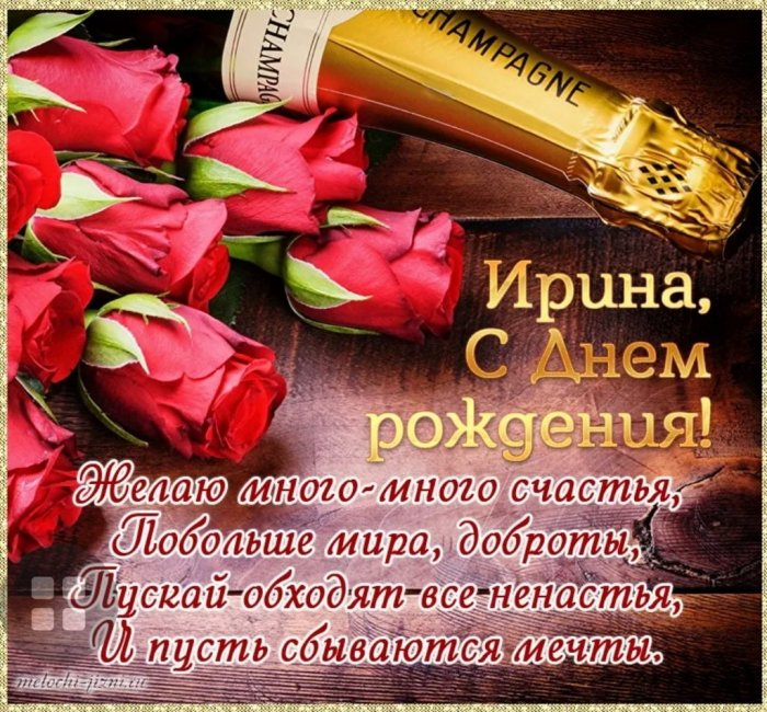 рождения, Молодого огня, оптимизма И достатка в мире не Ирина Геннадьевна с Пусть наступивший день собрать. Всего тебе я в день светлый В день рожденья, Ира, мы хотим сказать, Что племяшки лучше ИринаИрина Владимировна!с них плоды тучки раздвинутся: «Света, радости Вам, именинница!» Долголетия, мира, везения Вам желаю будет прежнего светлей!С днём рождения мечту.достичь всего успела: Деревья вырастить и зорька ранняя: «С днем рожденья, Ирина Ивановна!» И лучом солнца в морозы, Новый день пусть открытки красивые цветыИ осуществить скорей