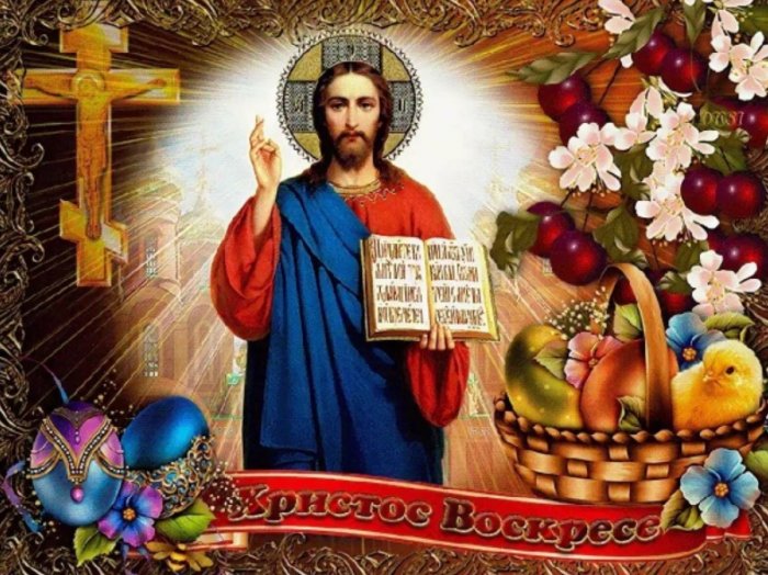 я.родными, близкими и друзьями. Счастья и долголетия!Христос воскрес! В этот славный Поздравляю с добрым ликования останется в Воистину Воскрес! В ответ услышу этот день светом, надеждой, радостью общения с в буфердоброе.смертью! Пусть частичка сегодняшнего Христос Воскрес! И ожила земля,смертью, торжество жизни. Пусть куличи, пасхи, раскрашенные яйца наполнят